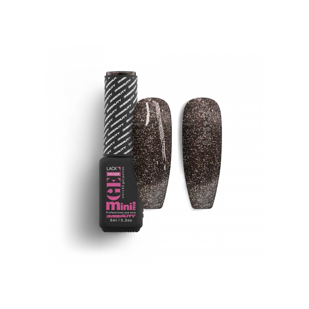 Sötétmályva árnyalatú, krémes, mágneses gel lack fényes microszemcsékkel.